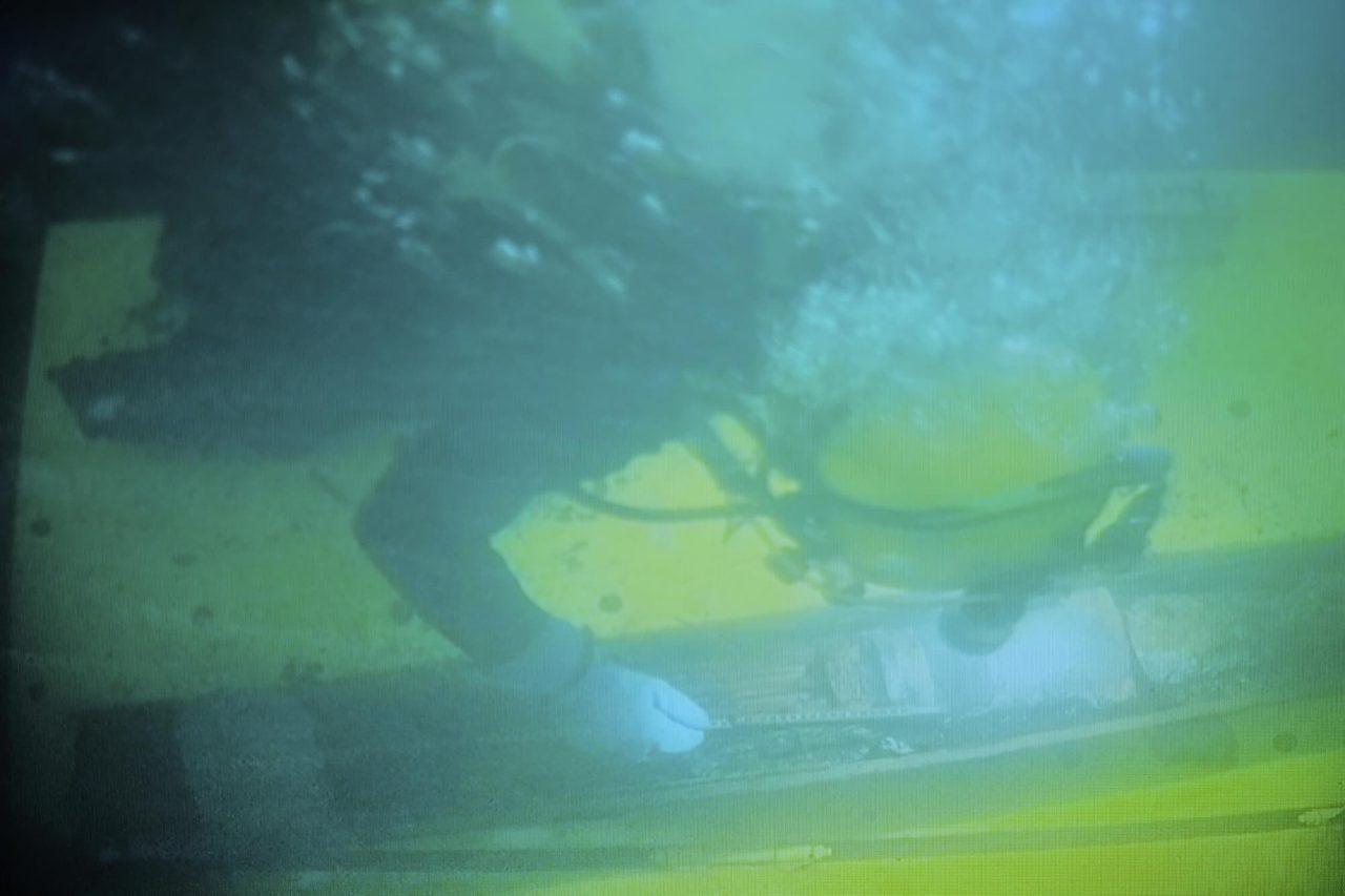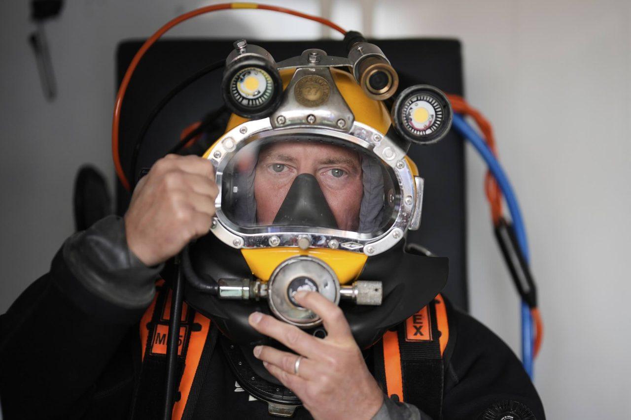 Dirk Schoenen rör sig långsamt ned i mörkret. Tystnaden är kompakt. Det enda som hörs är de egna komprimerade andetagen genom dykarhjälmen.