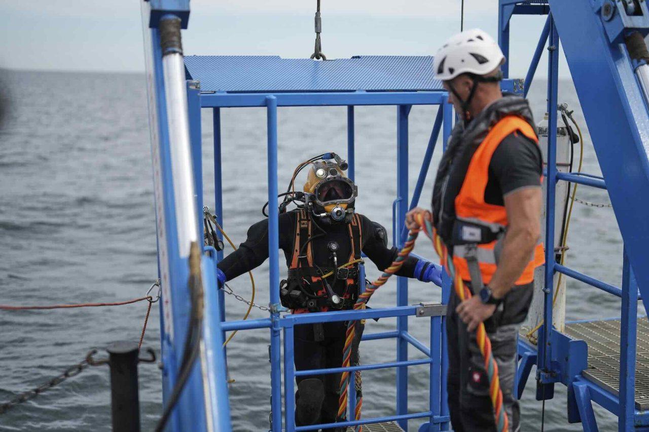 Från en plattform på ytan följer en grupp ingenjörer och sjömän noggrant varje rörelse via en kamera på Schoenens hjälm. Arbetet är inte riskfritt. Minor och odetonerade bomber blir känsligare med tiden och kan – i allra värsta fall – explodera.